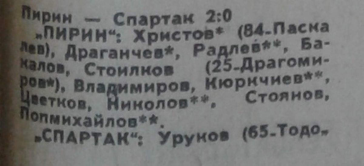 Огнян Колев (Спартак( провёл свой 100-й матч в А РФГ. Крастьо Паскалев (Пирин) дебютировал в А РФГ (из Пирински миньор Брежани)