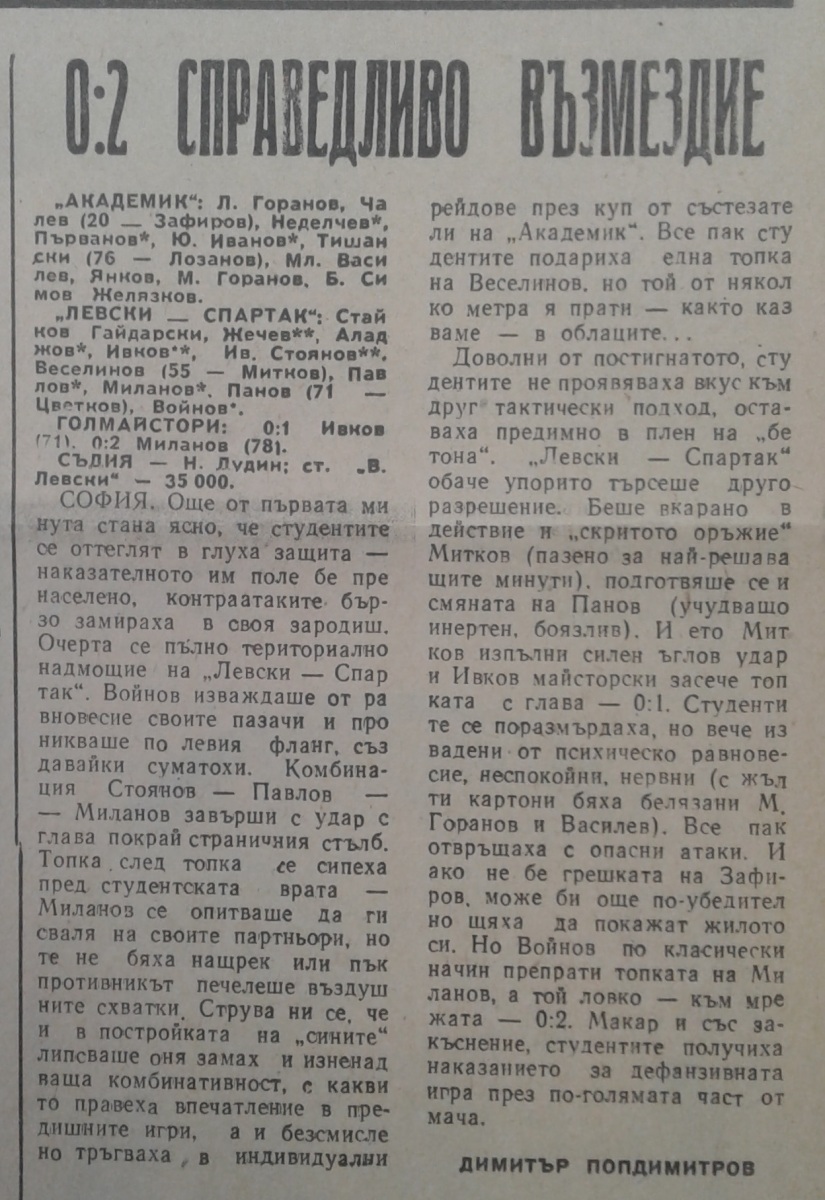 «Академик» София - «Левски-Спартак» София - 0:2