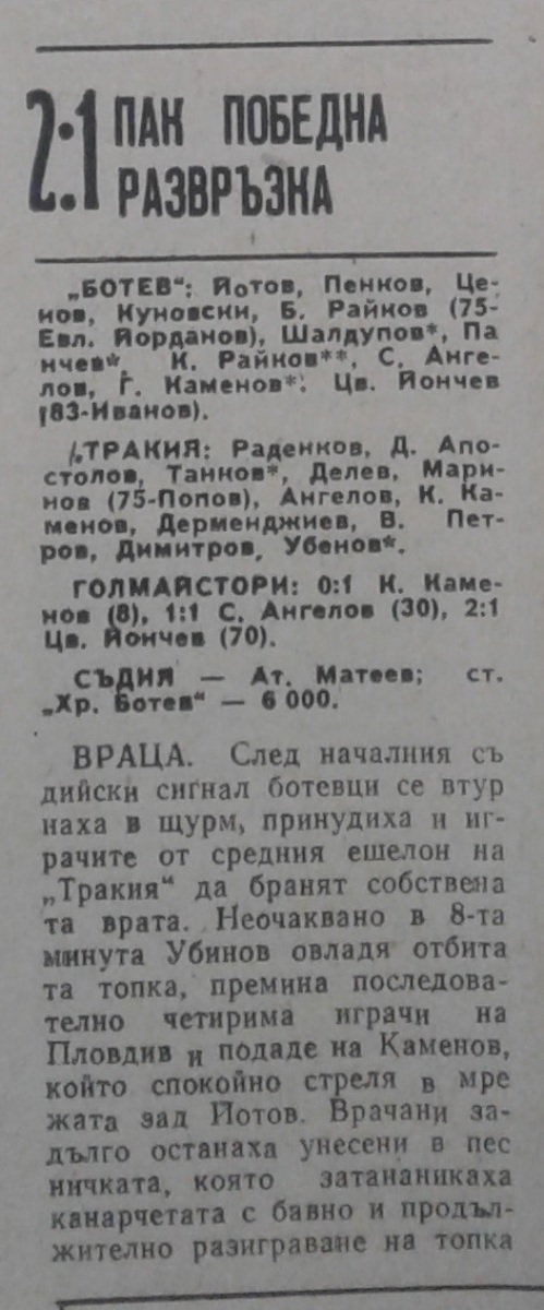 «Ботев» Враца - «Тракия» Пловдив - 2:1