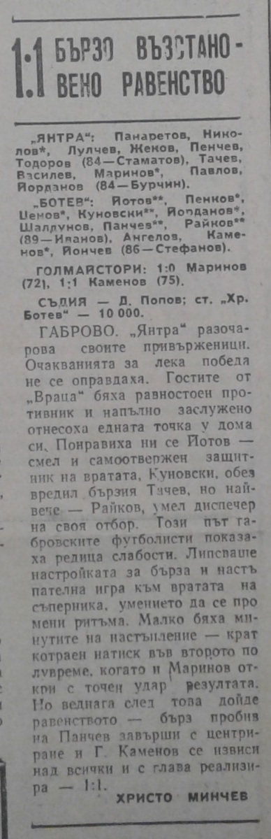 «Янтра» Габрово - «Ботев» Враца - 1:1