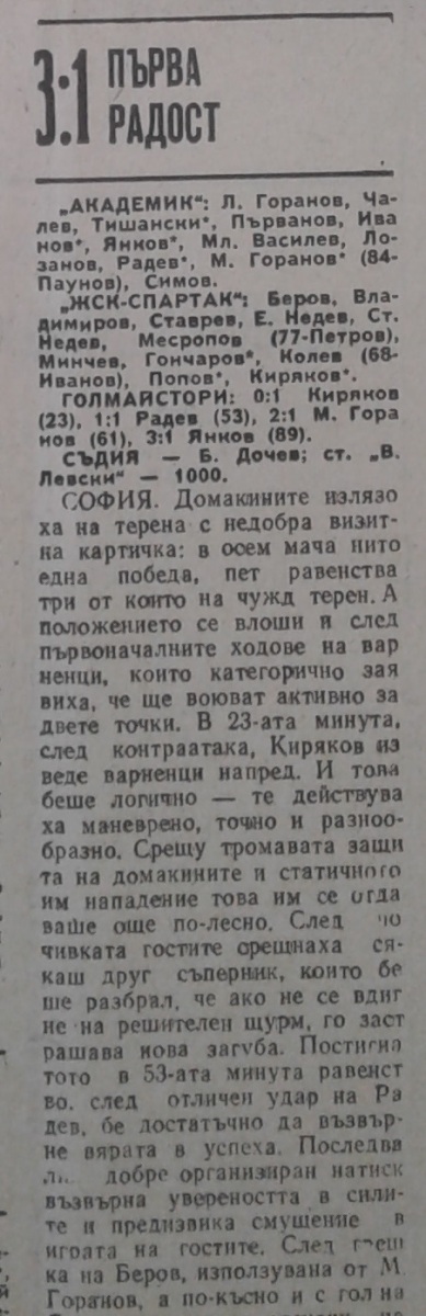 «Академик» София - «ЖСК-Спартак» Варна - 3:1