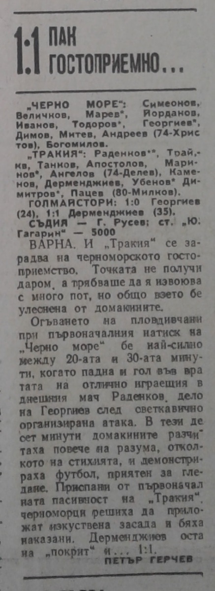 «Черно море» Варна - «Тракия» Пловдив - 1:1