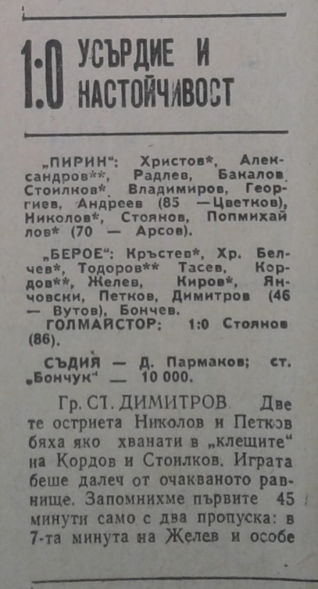 «Пирин» Благоевград - «Берое» Стара-Загора - 1:0