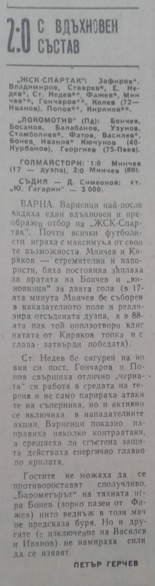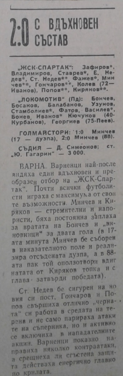 «ЖСК-Спартак» Варна - «Локомотив» Пловдив - 2:0