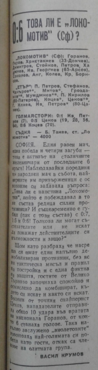 «Локомотив» София - «Этыр» Велико-Тырново - 0:6