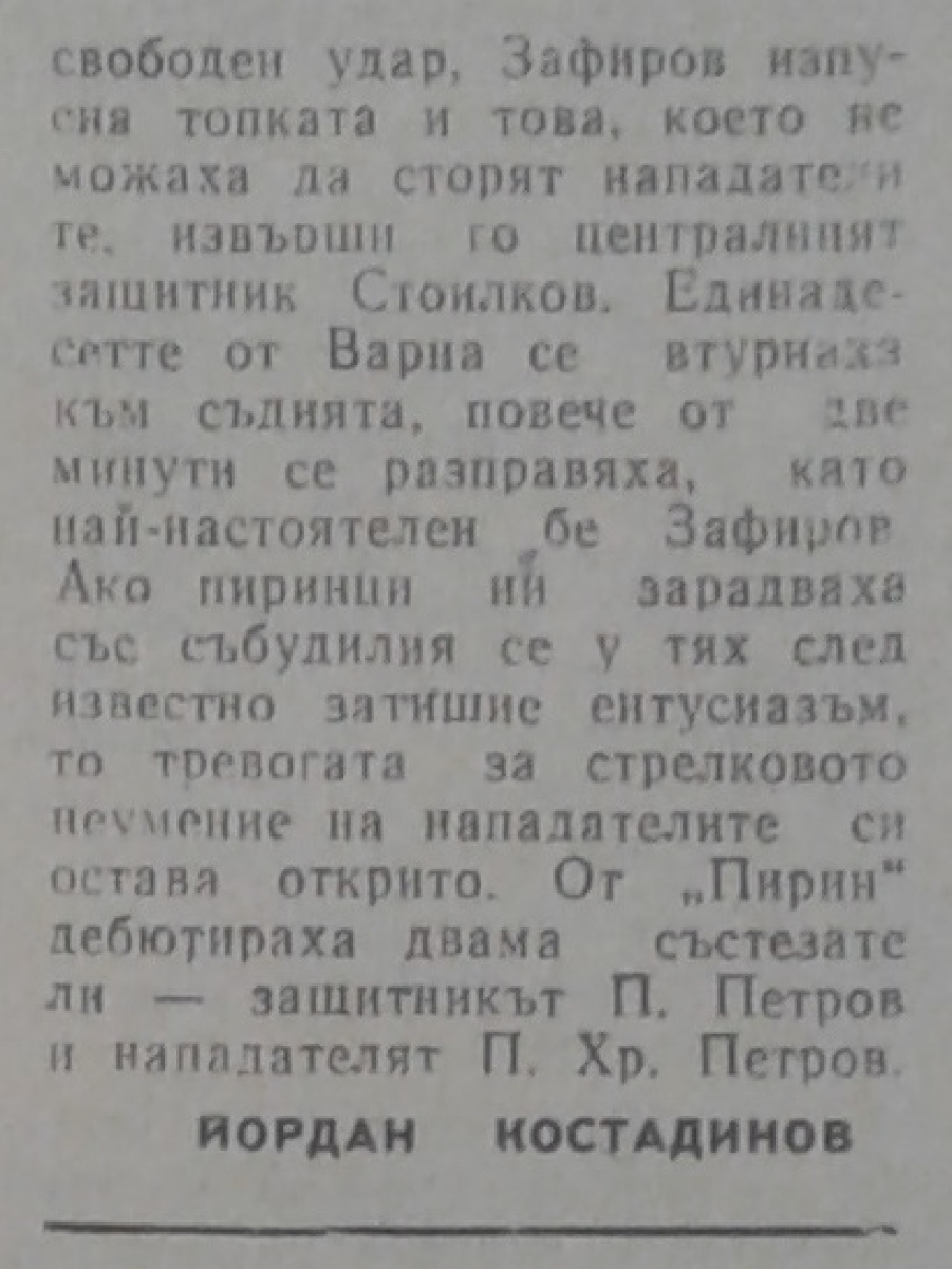 Петар Петров Хр. (Пирин) дебютировал в А РФГ (из юнош.к-ды Берое). Петар Петров Т. дебютировал в форме Пирин (из Ботев Враца)