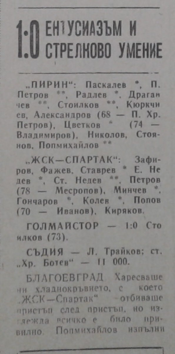 «Пирин» Благоевград - «ЖСК-Спартак» Варна - 1:0