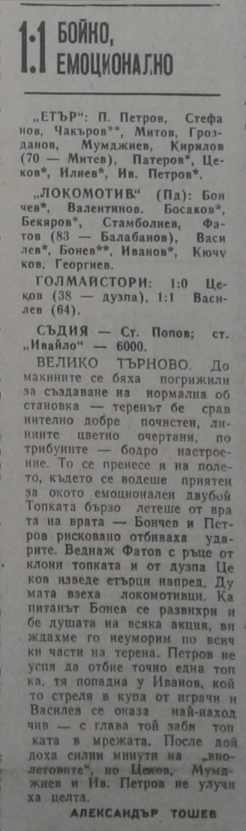 «Этыр» Велико-Тырново - «Локомотив» Пловдив - 1:1