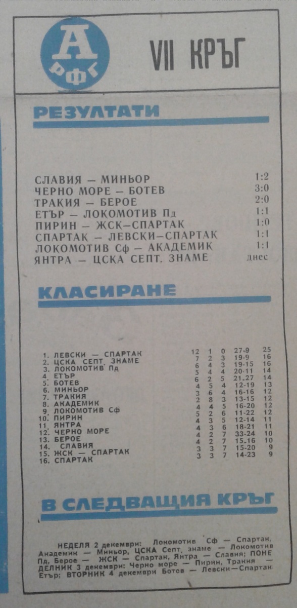 Матчи 7-го тура чемпионата Болгарии в А РФГ были перенесены с 30 сентября 1973 на 28 ноября 1973. Христо Тодоров (Черно море) сыграл свой 150-й матч в А РФГ. Юсейн Кюлджуев (Черно море) дебютировал в А РФГ (из Этыр Велико-Тырново)