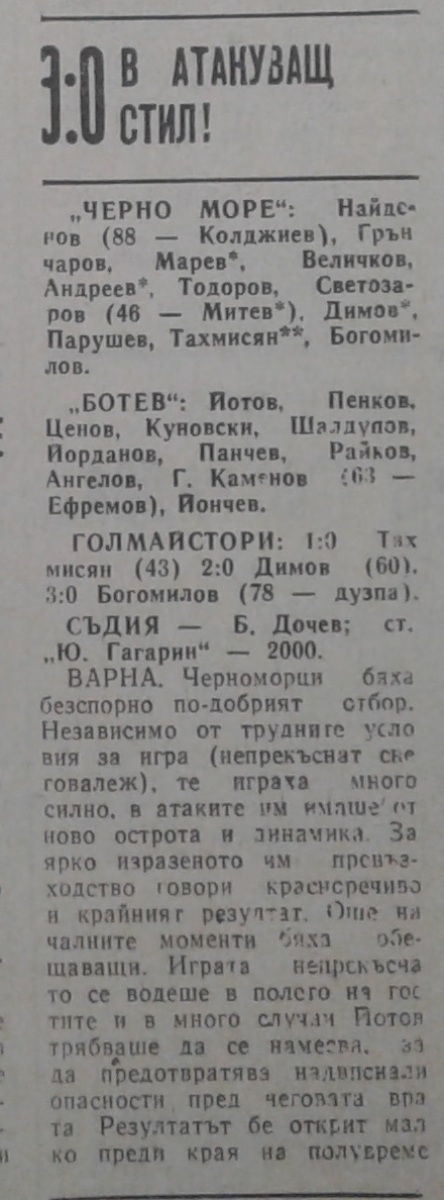 «Черно море» Варна - «Ботев» Враца - 3:0