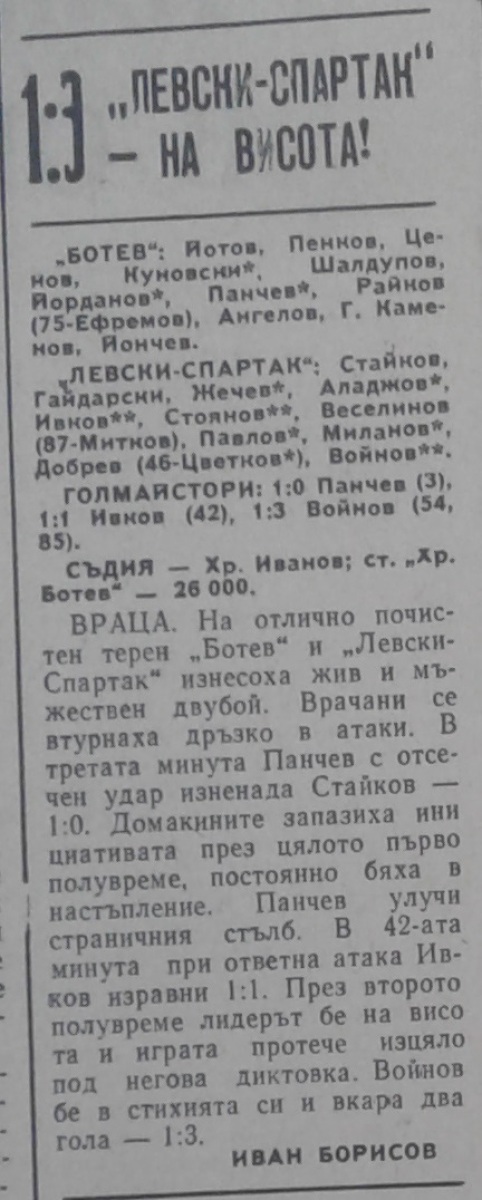 «Ботев» Враца - «Левски-Спартак» София - 1:3