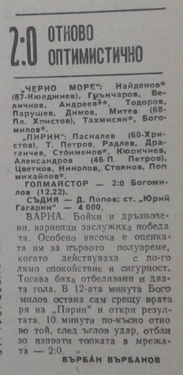 «Черно море» Варна - «Пирин» Благоевград - 2:0