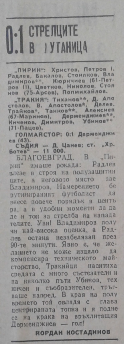 «Пирин» Благоевград - «Тракия» Пловдив - 0:1