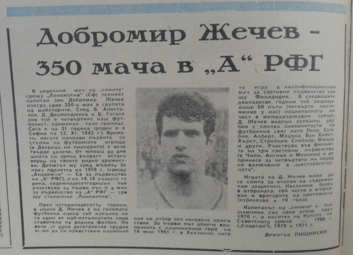 Добромир Жечев (Левски-Спартак) провёл свой 350-й матч в А РФГ.