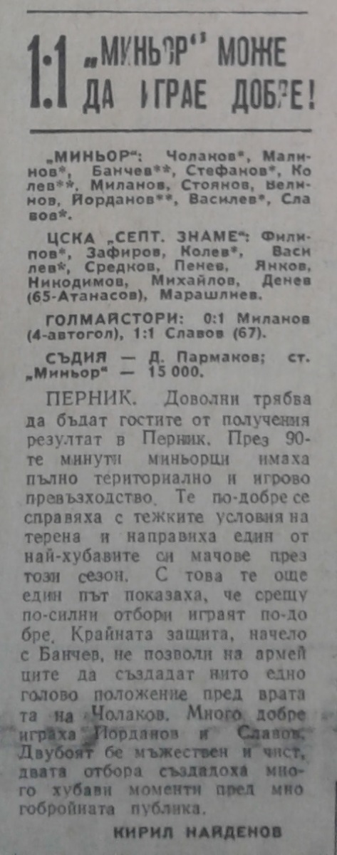 «Перник» Перник - «ЦСКА Септемврийско Знаме» София - 1:1