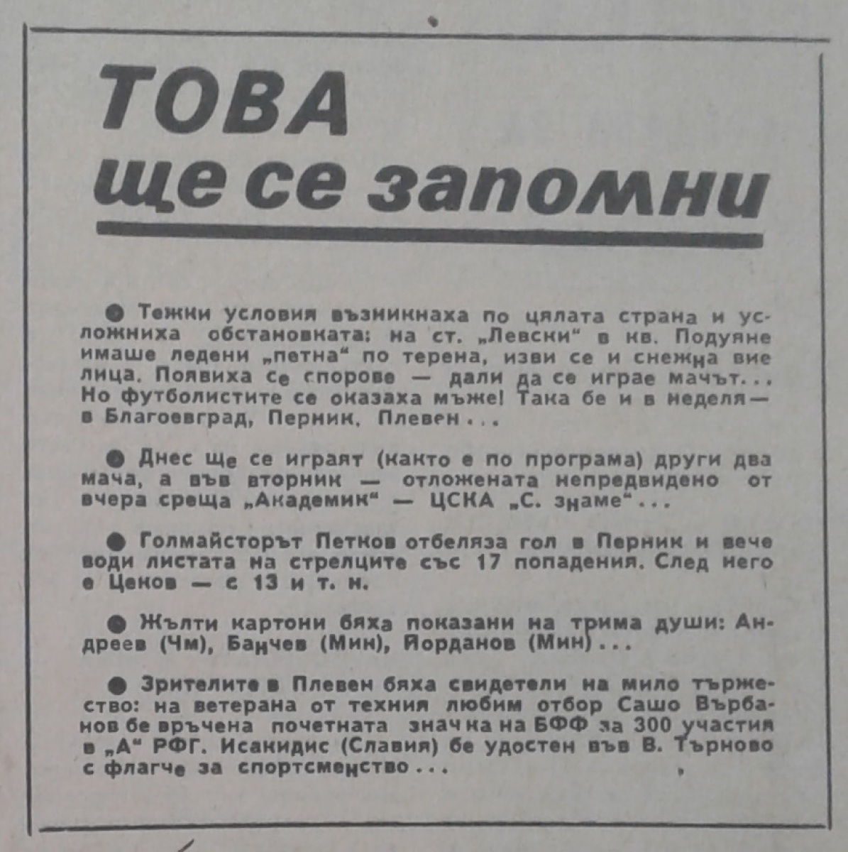 Этот матч был сыгран 18 декабря 1973 года. (вторник) с 14:00. Матч должн был сыгран 16 декабряв 16:30, но его отложили из-за того, что поле стадиона Васил Левски не была расчищена от снега.