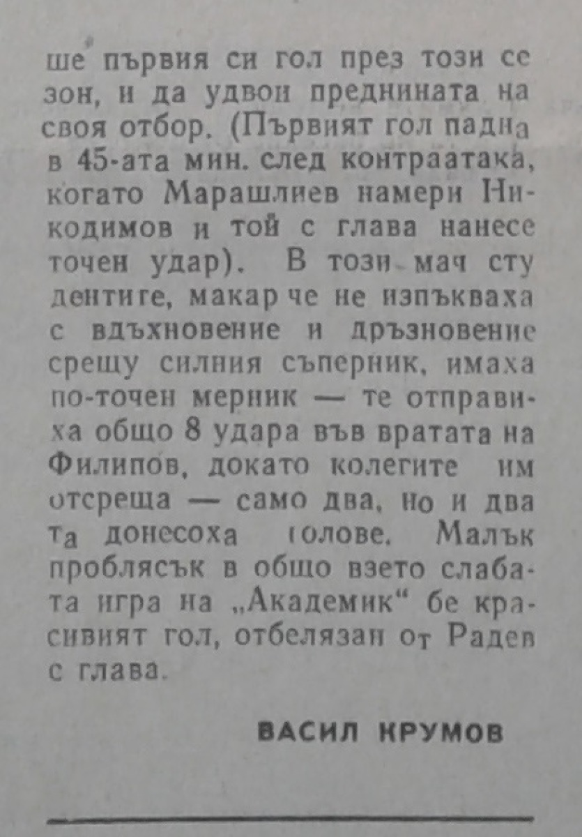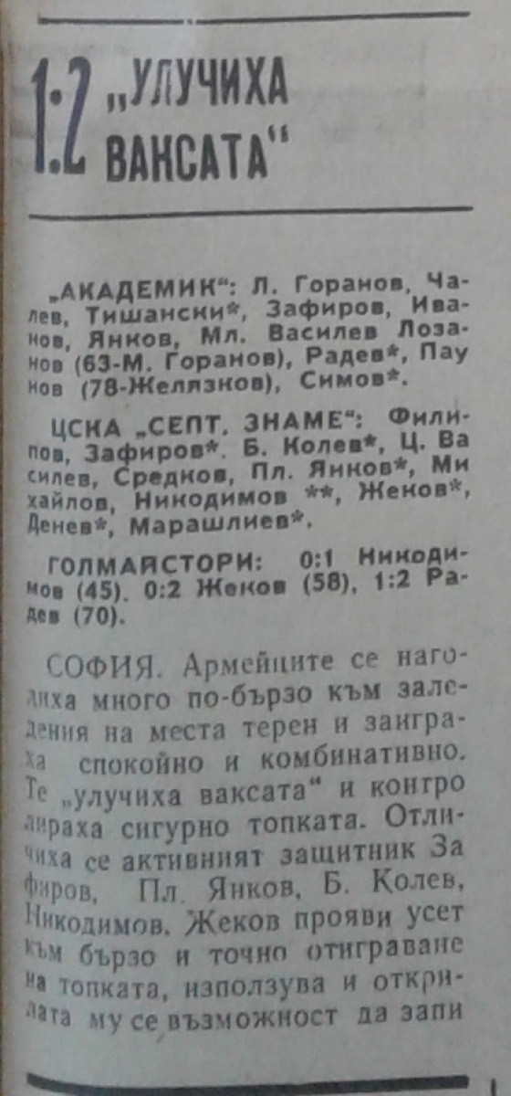 «Академик» София - «ЦСКА Септемврийско Знаме» София - 1:2