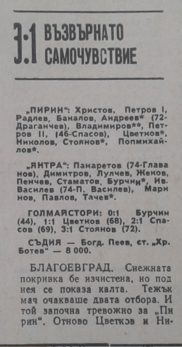 «Пирин» Благоевград - «Янтра» Габрово - 3:1