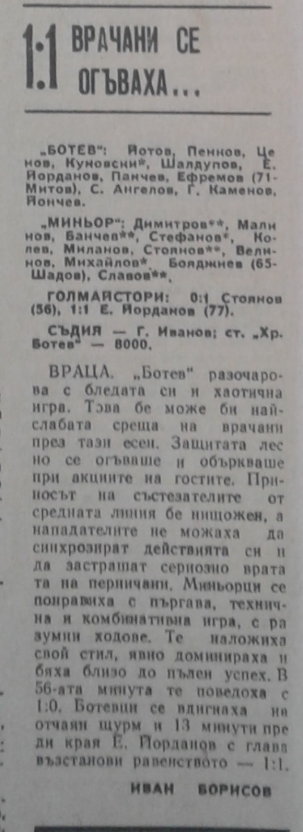 Никола Колев (Миньор Перник) провёл свой 200-йматч в А РФГ. Александар Михайлов (Миньор Перник) дебютировал в А РФГ (из юнош. команды). Веселин Бояджиев (Миньор Перник) дебютировал в А РФГ )из юнош. к-ды ЦСКА)