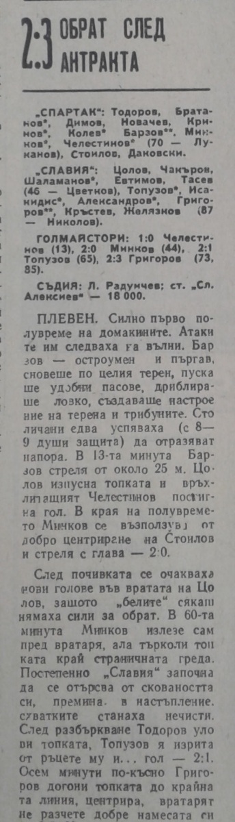 «Спартак» Плевен - «Славия» София - 2:3