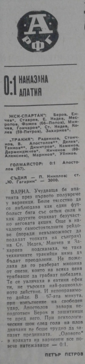 «ЖСК-Спартак» Варна - «Тракия» Пловдив - 0:1