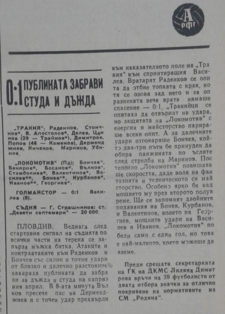 «Тракия» Пловдив - «Локомотив» Пловдив - 0:1