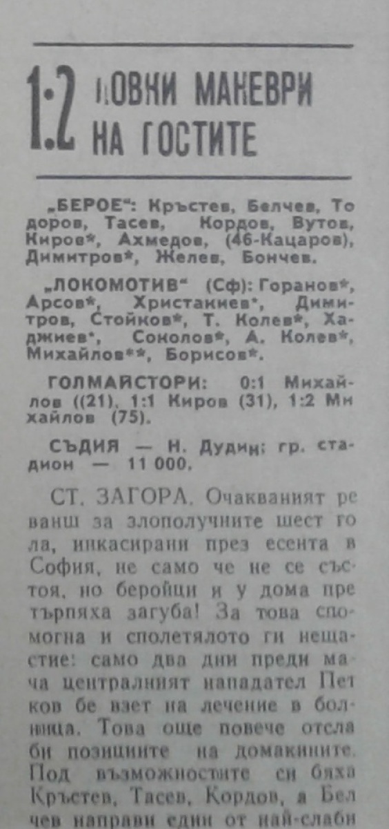«Берое» Стара-Загора - «Локомотив» София - 1:2