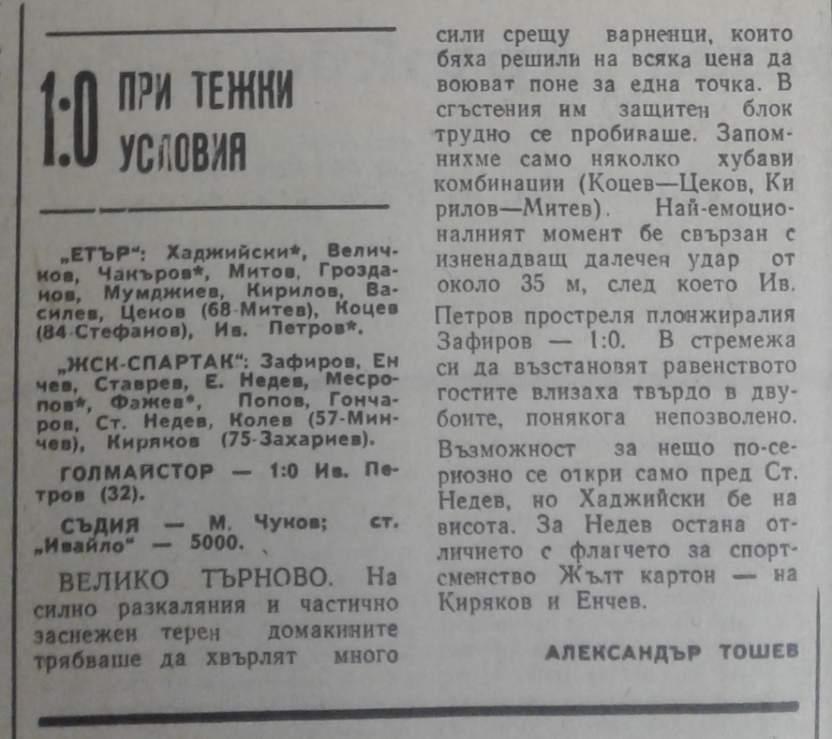 «Этыр» Велико-Тырново - «ЖСК-Спартак» Варна - 1:0