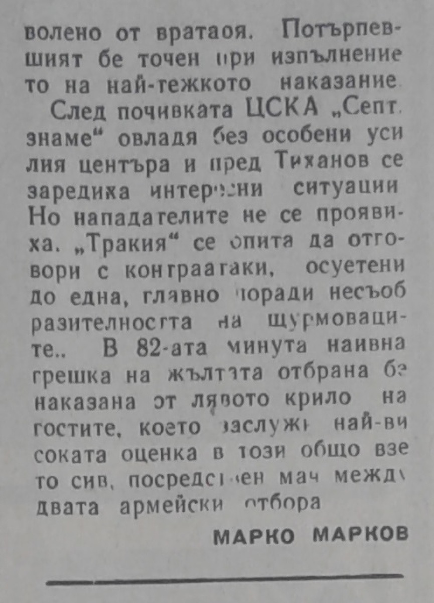 «Тракия» Пловдив - «ЦСКА Септемврийско Знаме» София - 1:2
