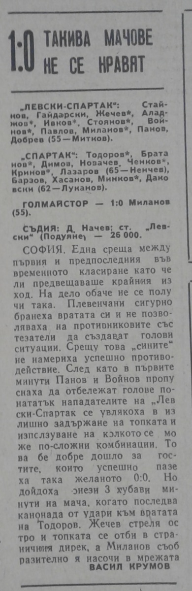 «Левски-Спартак» София - «Спартак» Плевен - 1:0