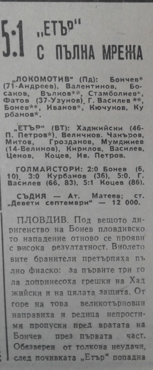 «Локомотив» Пловдив - «Этыр» Велико-Тырново - 5:1