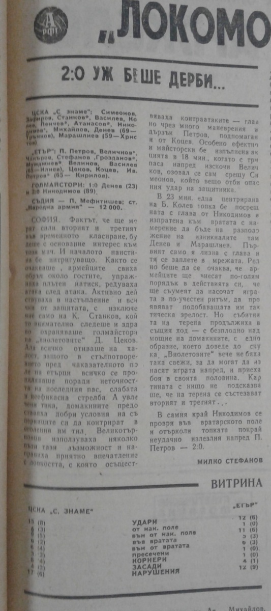 «ЦСКА Септемврийско Знаме» София - «Этыр» Велико-Тырново - 2:0