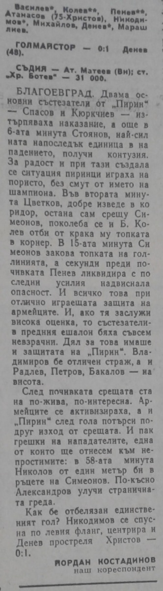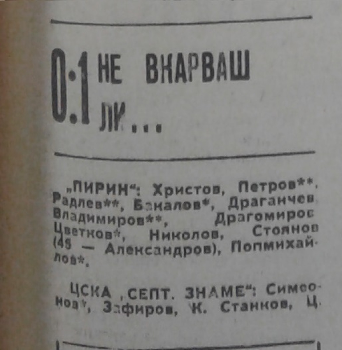 «Пирин» Благоевград - «ЦСКА Септемврийско Знаме» София - 0:1
