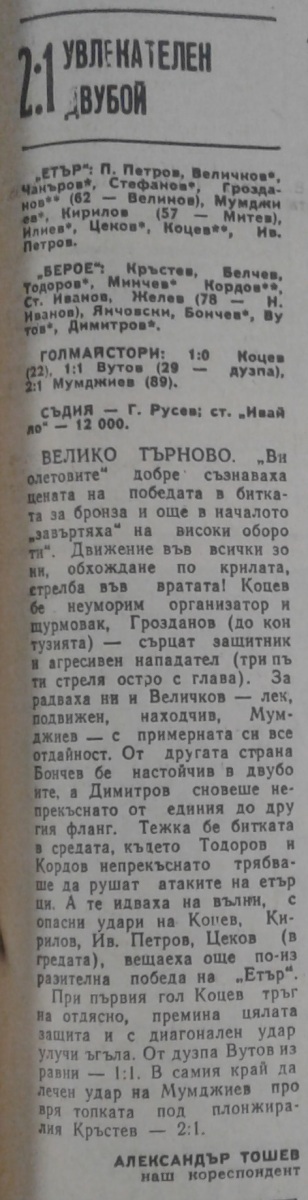 «Этыр» Велико-Тырново - «Берое» Стара-Загора - 2:1
