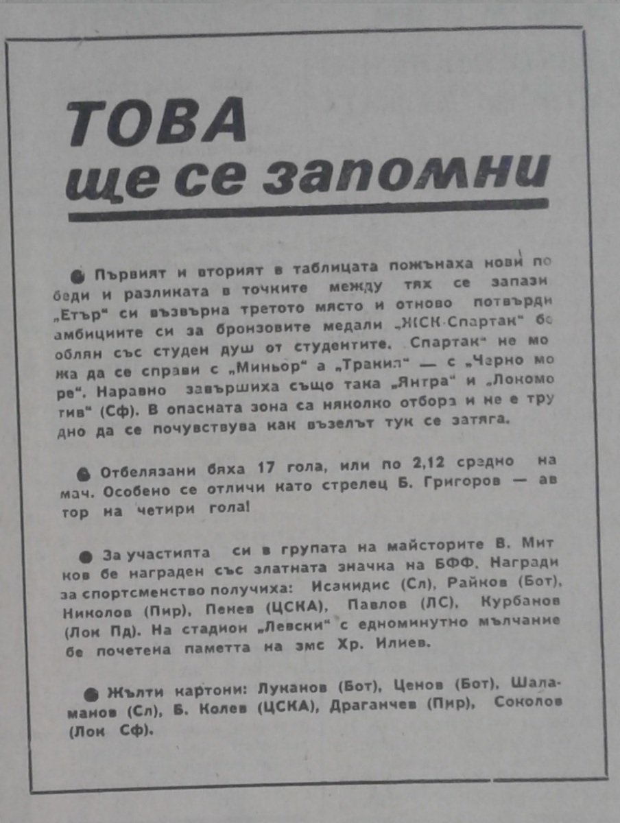 Чемпионат Болгарии 1973/74. Группа А