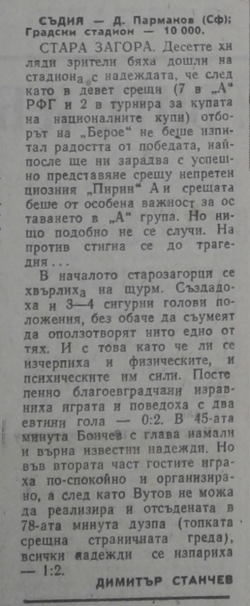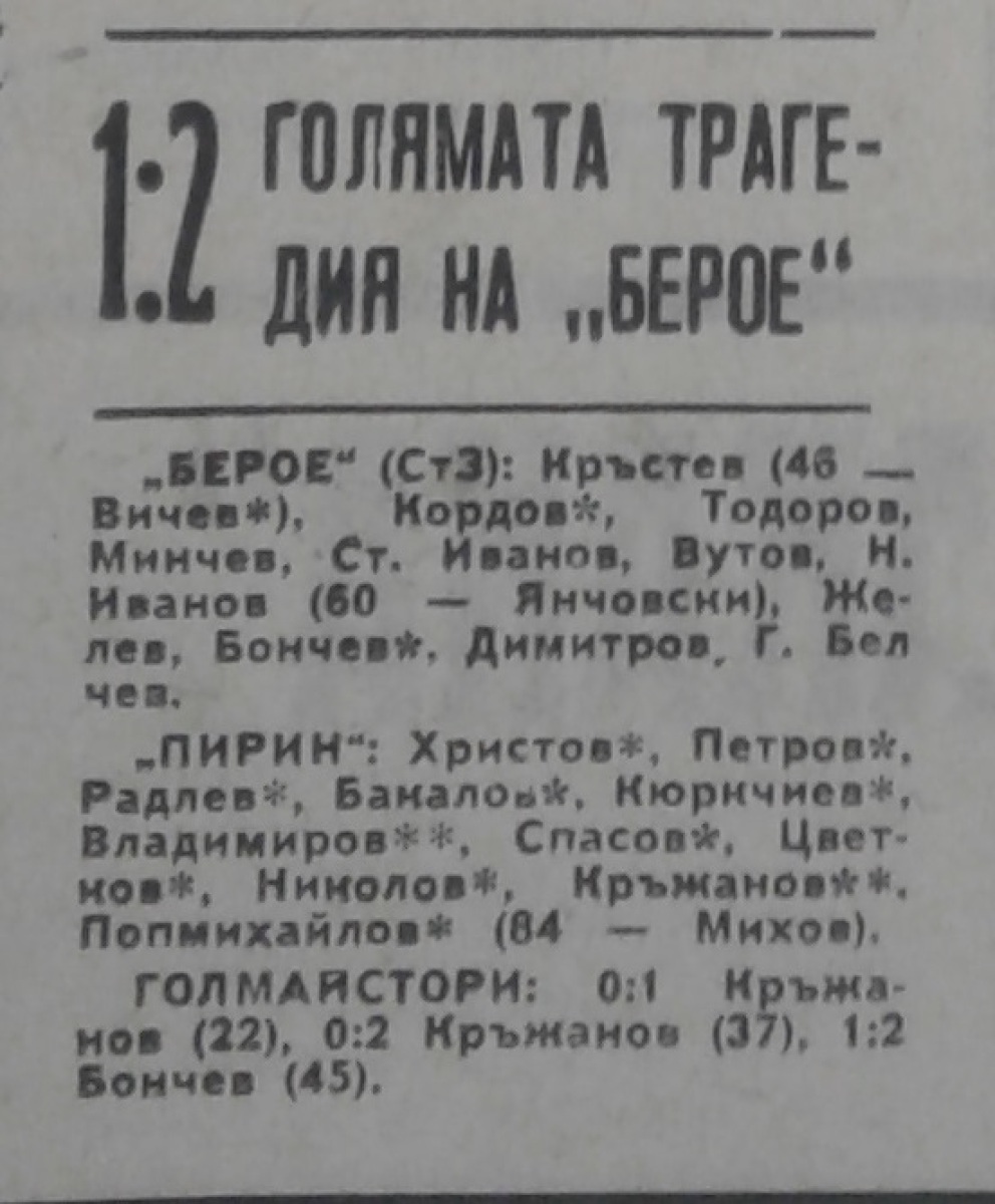 «Берое» Стара-Загора - «Пирин» Благоевград - 1:2