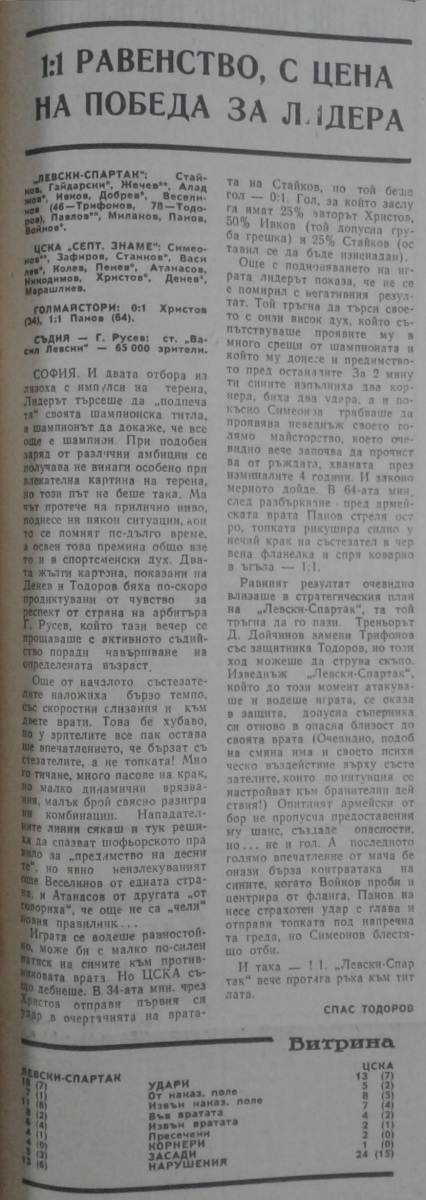 «Левски-Спартак» София - «ЦСКА Септемврийско Знаме» София - 1:1