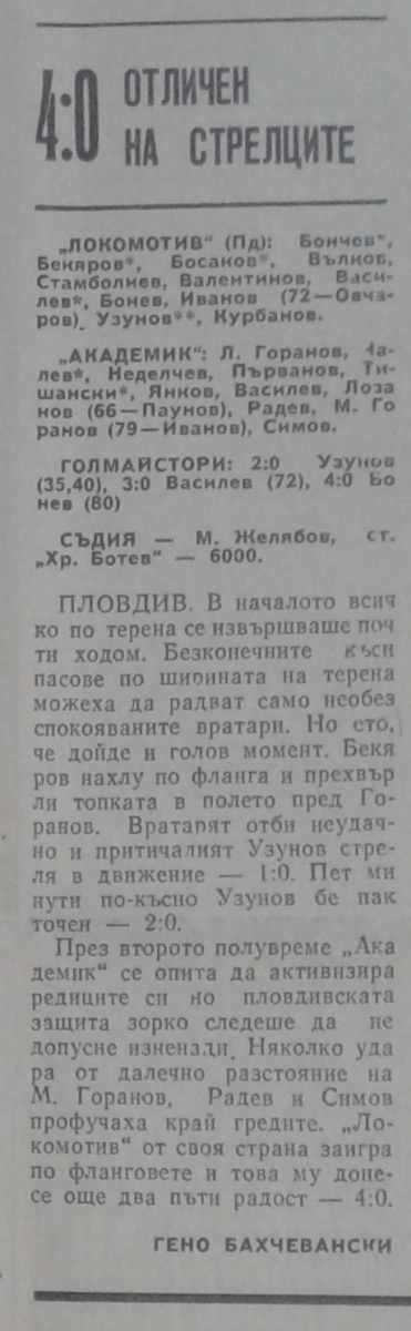 «Локомотив» Пловдив - «Академик» София - 4:0