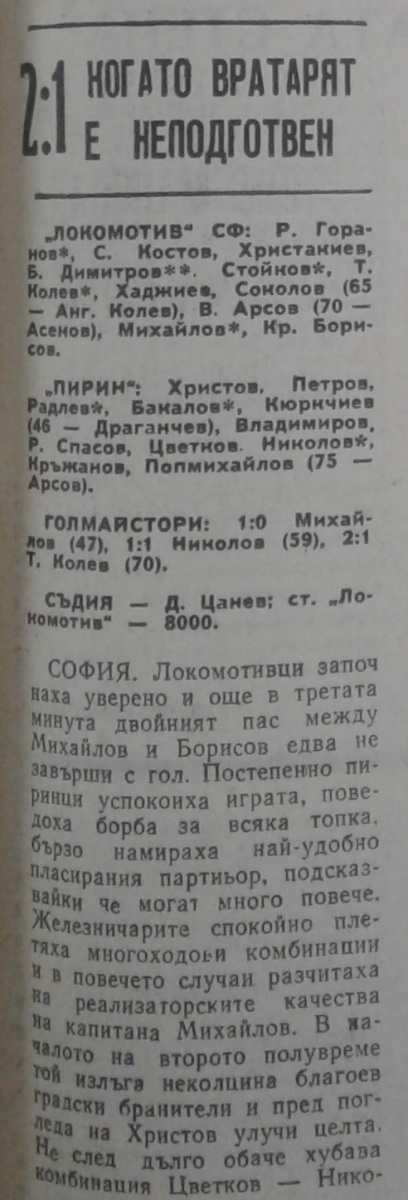 «Локомотив» София - «Пирин» Благоевград - 2:1
