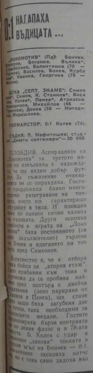 «Локомотив» Пловдив - «ЦСКА Септемврийско Знаме» София - 0:1