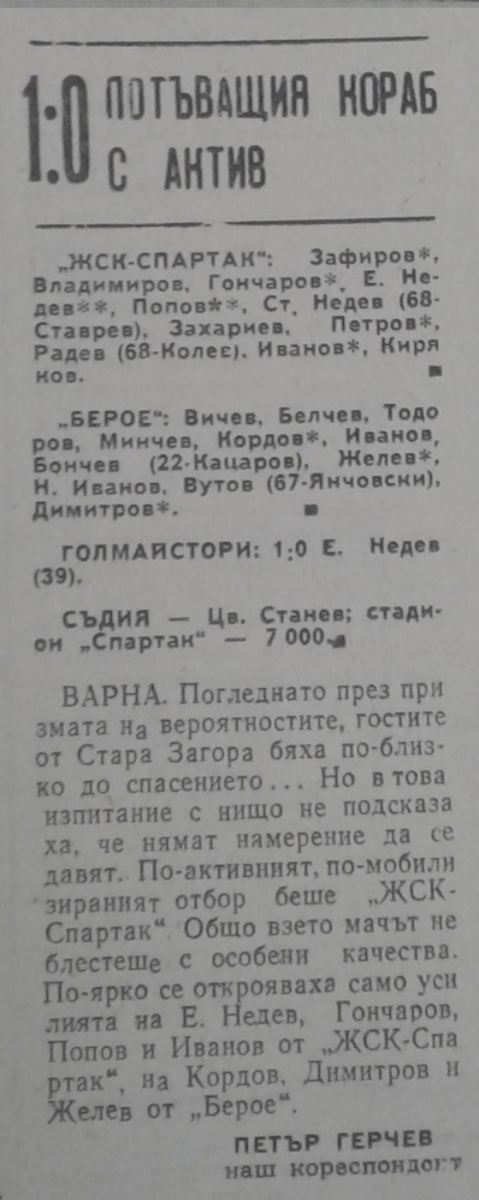 «ЖСК-Спартак» Варна - «Берое» Стара-Загора - 1:0