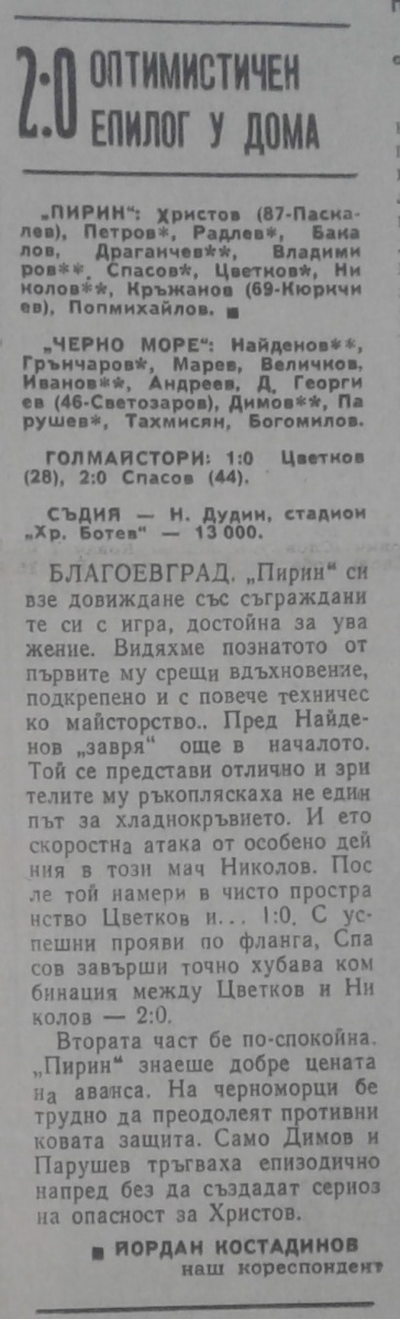 «Пирин» Благоевград - «Черно море» Варна - 2:0