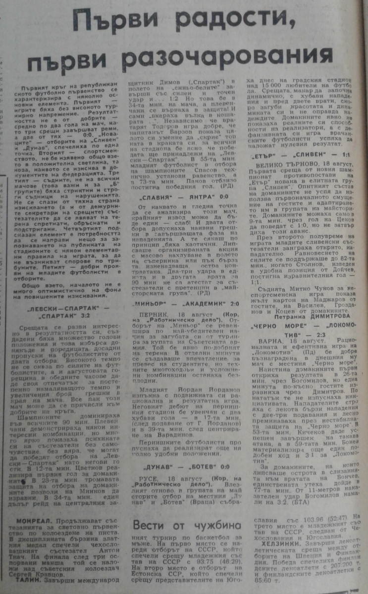 Слави Дамянов (Дунав Русе) провёл свой 100-й матч в А РФГ. Йордан Йорданов Георгиев (Дунав Русе) дебютировал в А РФГ (из Доростол Силистра).