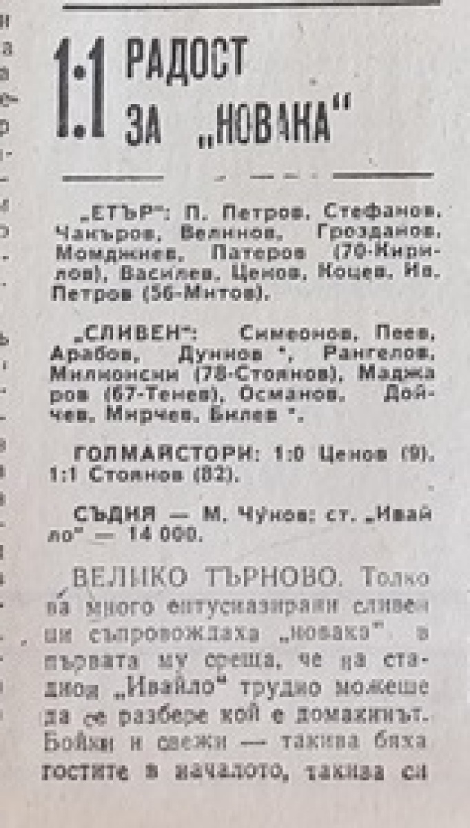 «Этыр» Велико-Тырново - АФД Сливен - 1:1