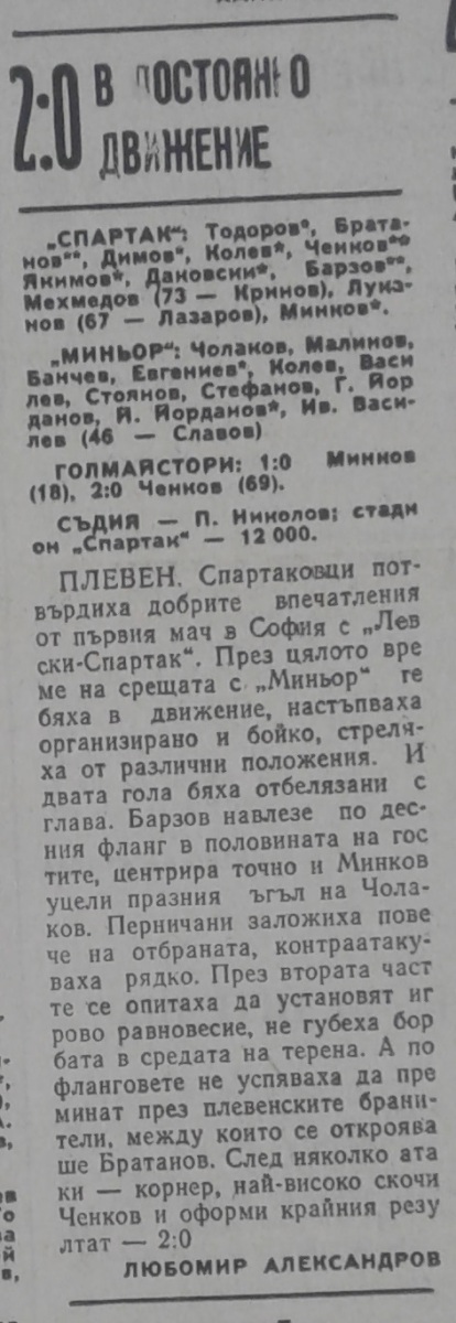 «Спартак» Плевен - «Минёр» Перник - 2:0
