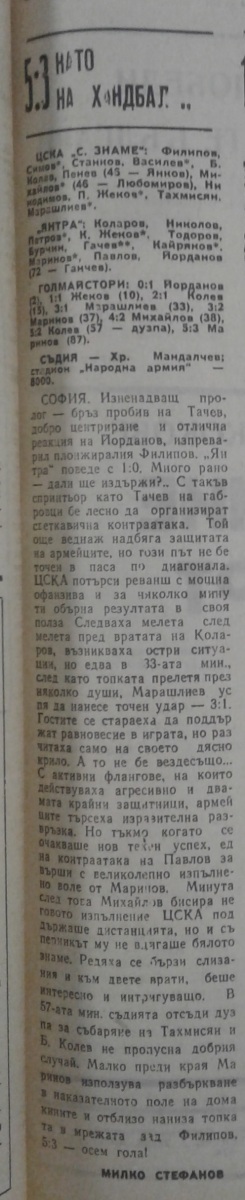 «ЦСКА Септемврийско Знаме» София - «Янтра» Габрово - 5:3