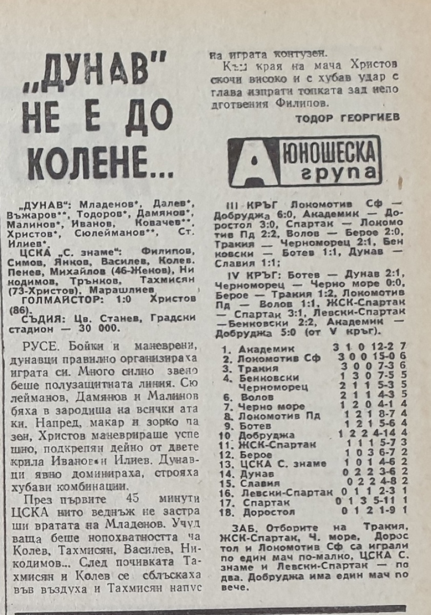 «Дунав» Русе - «ЦСКА Септемврийско Знаме» София - 1:0
