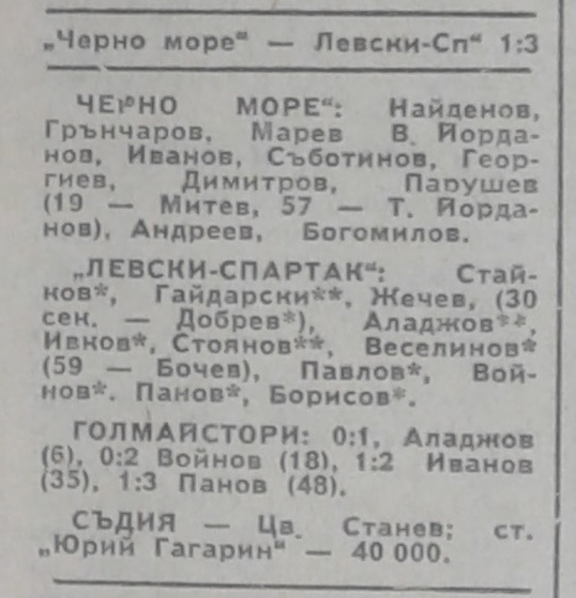 «Черно море» Варна - «Левски-Спартак» София - 1:3