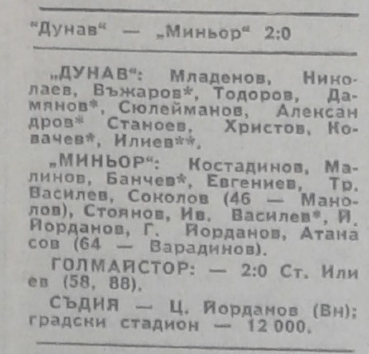 «Дунав» Русе - «Минёр» Перник - 2:0
