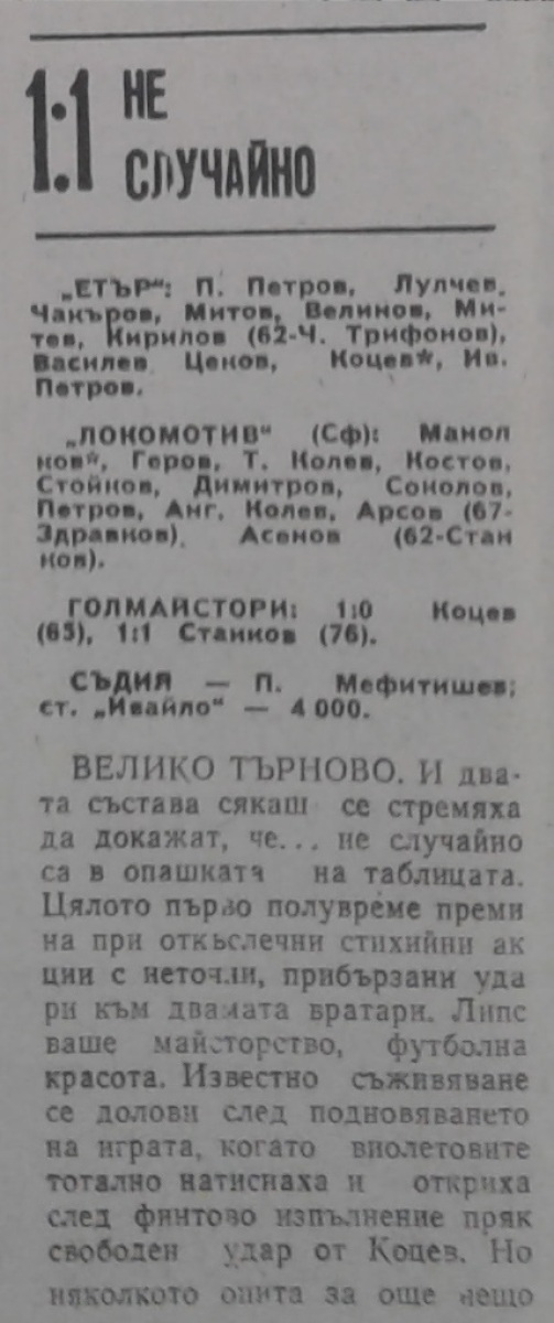 «Этыр» Велико-Тырново - «Локомотив» София - 1:1